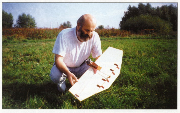 Tieto protichodné požiadavky spĺňa samokrídlo z plnej balzy potiahnutej moderným poťahovým materiálom Vlies, ktorý dodá krídlu dostatočnú pevnosť i pružnosť. Tieto vlastnosti je ale možné dosiahnuť iba za cenu malého ústupku aerodynamike - krídlo má profil rovnej dosky. Ubezpečujem ale všetkých vyznávačov profilománie, že pri plošnom zaťažení tohto modelu (24 g×dm-2) je tento profil plne dostačujúci na to, aby model zalietal všetko, čo môže budúci kombatár alebo akrobatár potrebovať. Model je bez podvozku, štartuje ruky, lieta sa na tráve. Je to jediná schodná cesta, ako môže začiatočník zvládnuť celé učenie s jedným modelom. Pri lietaní na asfalte znamená každá tvrdšia havária poškodenie, či zrušenie akéhokoľvek modelu. V neposlednej rade je model vhodný pre začiatočníka i jednoduchosťou konštrukcie a tým i stavby. Pri popise stavby budem predpokladať, že záujemcom o tento model sú už známe základné modelárske práce a pracovné postupy. Úplný začiatočník by mal rozhodne pracovať pod vedením skúsenejšieho modelára.